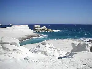 The Egremnoi sand beach in the Greek island of Lefkada, noted for its blue crystal waters,[3] is a popular tourist destination.