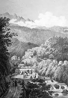 The rise of thermalism in the 19th century set off a some tourist activity among customers looking for relaxation. The spa clients stayed in the elegant Hell-Bourg station, and also in Cilaos after 1882.[4] Access difficulties and the lack of infrastructure stopped a third location, Mafate-les-eaux, from exploiting its thermal potential in the same way.