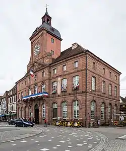 The Town hall of Wissembourg is a Baroque city hall in Wissembourg, a small town at the northern edge of the Bas-Rhin department of France, close to the German state of Rhineland-Palatinate. It is classified as a Monument historique by the French Ministry of Culture since 1932.[1]