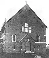 The ME Church's eighty-seven members soon found themselves in financial difficulties, however, having gone heavily in debt to build their new sanctuary. The chairman of the church's building committee had advanced his personal funds to complete the construction, thereafter becoming embroiled in years of litigation with the church.[8] By 1874, the church was drawing larger crowds under then-pastor Joseph Stitt, who was described as an "excellent leader of singing".[11] An afternoon Sunday school session was particularly popular, "principally devoted to learning new hymns, which attracted many of the young people of the town, especially the young men", noted one account.[11] When the ME church held its twenty-fifth anniversary celebration in 1896, it opened with prayer and a piano concert, "favored with a beautiful selection sung by Mrs. Randolph Murphy", said a contemporary report.[11]