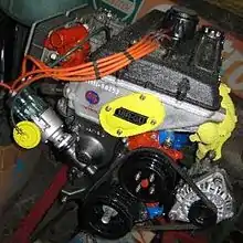 Bore and stroke was 77 mm × 78 mm (3.03 in × 3.07 in).[1] In common with new engines of the time, it was made from cast iron (both the block and the head), water cooled, used a three bearing crank, 12V electrics and a side-mounted gear-driven camshaft controlling overhead valves via pushrods in a non-cross flow head (exhaust and inlet manifolds being on the same side of the engine).[1] Induction was by a twin throat down-draft carburettor, the compression ratio was 8.0:1 and the total weight was 155 kg (342 lb).[1] An LPG version, the R-LPG, was produced for the last two years.