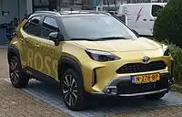 The Toyota Yaris Cross (Japanese: トヨタ・ヤリスクロス, Hepburn: Toyota Yarisu Kurosu) is a subcompact crossover SUV (B-segment) produced by the Japanese automaker Toyota, adopting the Yaris nameplate primarily for the Japanese, European, and Australian markets. It is built on GA-B platform as the XP210 series Yaris hatchback and positioned between the Raize and C-HR in Toyota's crossover SUV lineup. It replaces the Japanese/European market XP110 series Ist/Urban Cruiser.[3][4]