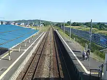 The unstaffed station has two side platforms serving two tracks on the otherwise single line.