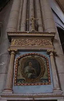 ![]() Tresain praying before of the Crucifix, from the Église Saint-Trésain in Avenay-Val-d'Or | |