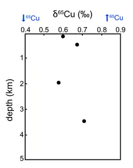 72. Larson PB, Maher K, Ramos FC, Chang Z, Gaspar M, Meinert LD (November 2003). "Copper isotope ratios in magmatic and hydrothermal ore-forming environments". Chemical Geology. 201 (3–4): 337–50. Bibcode:2003ChGeo.201..337L. doi:10.1016/j.chemgeo.2003.08.006.