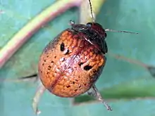 Trachymela is a genus of beetles, commonly called leaf beetles and in the subfamily Chrysomelinae. These beetles are usually brown or black and have elytra with verrucae (bumps) and lacking striae. Trachymela can be found in all states of Australia[1] There are over 120 species.[2]