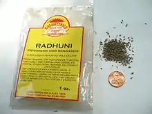 The small dried fruits, commonly referred to as seeds, are similar in appearance to those of ajwain, celery, and caraway. Because of their similarity in both appearance and flavor, it is often confused or substituted with celery seed.