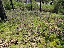 It is a perennial that produces purple or blue flowers in the spring on herbaceous stems.[4]