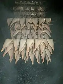 The UK's Department for Environment, Food and Rural Affairs (DEFRA), defines Traditional Grimsby smoked fish "as fillets of cod and haddock, weighing between 200 and 700 grams, which have been cold smoked in accordance with the traditional method and within a defined geographical area around Grimsby.[2] After processing the fish fillets vary from cream to beige in colour, with a characteristic combination of dry textured, slightly salty, and smokey flavour dependent on the type of wood used in the smoking process. Variations in wood quality, smoke time and temperature control the end flavour. The smoking process is controlled by experienced cold smokers trained in the traditional Grimsby method.