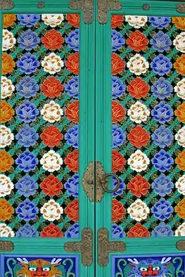 Korean traditional patterns were used in architecture, daily goods, and artifacts of Buddhist temples to further emphasize Buddhism. The main purpose for making patterns was decorative, and often functioned to protect the object. For example, 'Dancheong' is a Korean artifact painted with various patterns on a wooden structure. The reason for making the Dancheong pattern was to protect the structure from decay from rain or wind. Dancheong was especially useful at showing colours important to Korea, these were blue, red, black, yellow, white, black.[5]