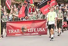 Trail Life USA was formed in July 2013.[19] On September 6–7, 2013, a national convention was held for the new group where chartering rules, programs, rankings, and uniforms were adopted and its name revealed.[2] Over 300 names were considered for the new organization.[10] The group selected Trail Life USA as its name[10] and chose to start in January 2014 with an expected 1000 incubation troops formed by then. It was also revealed in September that Trail Life would be partnering with American Heritage Girls. During the national convention announcing Trail Life USA, Stemberger told the audience "Real men value truth over tradition," and "Real men value principle over program, and they value integrity over institutions."[4]