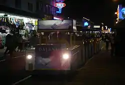The Sightseers Tram Car (commonly referred to as the Tramcar) is a trackless train service running on the Boardwalk in the Cape May County, New Jersey communities of Wildwood and North Wildwood.[1] The service, which began on June 11, 1949,[2] takes passengers along the two-mile long Wildwood boardwalk. Service is available at all points along the boardwalk, from the beginning at Cresse Avenue to the end at 16th Avenue in North Wildwood.