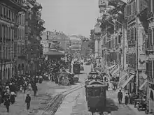Bern's fourth tramway, line IV, was the first radial route in the Bern tramway network. It ran from the railway station to Brückfeld. Scheduled services on line IV commenced on 27 June 1908.[1] To cater for the Eidgenössische Schützenfest 1910, line III had been extended during the preceding winter months to Papiermühlestrasse. In addition, four new two-axle tram trailers had been purchased. In 1909, more than ten million passengers travelled on Bern's trams for the first time.