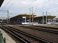 Kraków Central station (Polish: Kraków Główny, commonly called Dworzec Główny) is the largest and the most centrally located railway station in Kraków. The building, constructed between 1844 and 1847 (architect: P.Rosenbaum), is parallel to the tracks. The station was initially a terminus of the Kraków – Upper Silesia Railway (Kolej Krakowsko-Górnośląska, German: Obeschlesische-Krakauer Eisenbahn). The design was chosen to allow for future line expansion. Trains entered the trainshed via an archway in a brick wall at the northern end of the station.