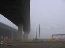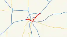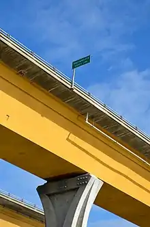 Following the I-5 junction, US 50 runs on a freeway section commonly referred to as the WX Freeway[5] due to it being flanked by the parallel one-way W & X Streets, along the south side of Downtown Sacramento. This part of the freeway is also built upon a raised embankment, to allow the many city streets to pass under it. The route then hits an interchange with a crossing freeway where Business 80 is the route heading north, and SR 99 is the route heading south.
