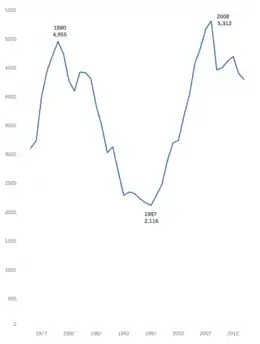 Between 2008 and 2011, the economic recession, by a reduction in distance traveled, contributed to reducing fatalities.[10]