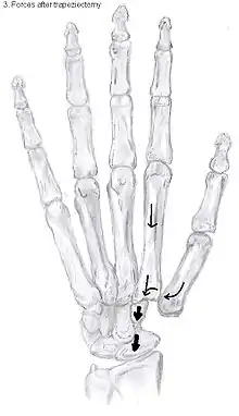 Another technique used to assumable restore stability of the thumb, is a ligament reconstruction after a trapeziectomy is performed. The thought is that ligament reconstruction provides more stability to the thumb after removal of the trapezium bone.[35]