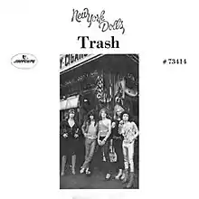 "Trash" is the debut single by American hard rock band the New York Dolls. It was recorded for their 1973 self-titled album and released as a double A-side with the song "Personality Crisis" in July 1973. "Trash" did not chart upon its release, but has since been hailed by music critics as an anthemic glam rock and proto-punk song. In 2009, the band recorded a reggae-styled remake of the song for their album Cause I Sez So.[1]