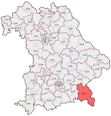 Traunstein is an electoral constituency (German: Wahlkreis) represented in the Bundestag. It elects one member via first-past-the-post voting. Under the current constituency numbering system, it is designated as constituency 225. It is located in southern Bavaria, comprising the districts of Berchtesgadener Land and Traunstein.[1]