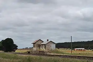 Trawalla is a closed station located in the town of Trawalla, on the Ararat railway line in Victoria, Australia. A disused goods yard is located at the station. The station was one of 35 closed to passenger traffic on 4 October 1981 as part of the New Deal timetable for country passengers.[1] Until the 1980s Trawalla was still used as a staff exchange point to either Ballarat or Beaufort. The line through Trawalla closed in 1995 after all traffic was diverted via Creesy but was reopened in 2004 as part of the Linking Victoria program. The station building still remains and is visible from the Western Highway and from inside the train.