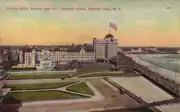 The Traymore was leased by the US Military during World War II, as part of Army Air Force Basic Training Center No. 7. The forty-seven Atlantic City resort hotels taken over by the United States Military[4] were collectively dubbed "Camp Boardwalk".[5] The Traymore was operated jointly with the adjacent Chalfonte-Haddon Hall Hotel as the England General Hospital, which opened on April 28, 1944.[6] The hospital was named for Lt. Col. Thomas Marcus England, who had worked with Walter Reed researching yellow fever in Cuba in 1900. The Traymore served as the convalescent reconditioning section of the hospital.[7] The last patients left the hospital in June 1946 and the Traymore was returned to its owners and reopened soon after.[8]