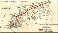 The Vallee des Dappes is a small valley about 6 kilometres (4 mi) long and 3 km (2 mi) broad, located in the Swiss Canton of Vaud. Although the valley had little value as a territorial possession, it provided an accessible military route between France and Savoy.[1] Annexed by Napoleonic France in 1802, it was returned to Switzerland by the Congress of Vienna, though the French continued to call for its retrocession. After several attempts to reacquire the area were firmly rebuffed by the Swiss, France decided in 1862 to offer a nearby section of its own territory, comparable in size, in exchange. The Swiss agreed, and a treaty to effect the switch was accordingly negotiated in Bern. Slightly less than 8 square kilometres (3 sq mi) of territory changed hands.[2] A set of maps showing the boundary changes may be viewed here.