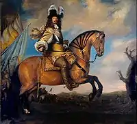 When peace talks started in Osnabrück to end the Thirty Years' War, a Pomeranian delegation was present in early 1644 and from October 1645 to August 1647.[43] Stralsund had sent her own delegates, and the rest of the duchy was represented by von Eickstedt and Runge, accredited by both Sweden and Brandenburg.[43] On 3 August, George William of Brandenburg's delegation started to negotiate a partition of the duchy with Sweden.[43] While the Pomeranian nobility in October rejected a partition and urged Brandenburg to look for alternatives, the partition was made definite on 28 January 1647 in Osnabrück, signed as Peace of Westphalia on 24 October 1648: Western Pomerania was to remain with Sweden, while Farther Pomerania was to become a fief of Brandenburg.[44] Swedish field-marshal Carl Gustaf Wrangel was appointed general governor of Pomerania in 1648.[44] After the peace treaty, Sweden demobilized her forces in Pomerania, keeping between 2,000 and 4,000 troops.[45]