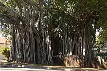 An approach needs to be developed that is appropriate for each of these unusual forms. For example, clonal colonies, such as the Pando aspen, may occupy many acres. The area occupied by the colony should be measured as well as the size of the largest individual trunk present. Banyan-like trees similarly consist of multiple trunks spread across a large area. In many of these specimens the interior trunks are not easily accessible, if accessible at all. An approach to their measurement would be to measure the area occupied by the many trunks, the area occupied by the crown of the tree, the height of the tree, and any other measurements the investigator deems appropriate. These measurements would then be supplemented by a narrative description and photographs. The goal in all of these cases of trees with unusual forms is to document their characteristics.[13] Girth can also be thought of as essentially a snapshot of the cross-section of a tree at one particular elevation. In some cases the base of the tree may be so complex that simply wrapping a tape around the base would misrepresent the true wood girth or character of the tree. An example of this would be Big Tree of Tule in Santa María del Tule, Oaxaca, Mexico[10] described above. The Tule tree has a diameter of 38 feet 1.4 inches (1,161.8 cm) as measured by tape wrap, but because of its irregularity a cross-sectional wood area expressed as a circle gave an effective diameter of only 30 feet 9 inches (937 cm). The base of the tree was mapped in three dimensions using a frame mapping technique. A rectangular frame was strung around the perimeter of the tree. A series of measurements from the reference lines to the edge of the trunk mapping the irregularities of the tree surface and converted to Cartesian x-y coordinates. The process was repeated at different heights to create a three-dimensional model of the tree.[21] This mapping process can be automated. Taylor[22][23] has been developing a cloud mapping process using optical parallax scanning technology whereby thousands of measurements are made around the trunk of a tree. These can be used to recreate a three-dimensional model of the trunk and girth and diameter data are among the values that can be calculated.