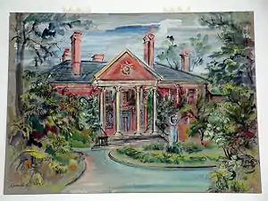 ![]() Front View of Tregaron (1961), watercolor by Lily Spandorf. | |
