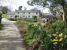 Tregidden Bridge is a Grade II listed structure, and spans the stream that marks the parish boundary between St Martin-in-Meneage and Manaccan parishes.[8] The road approaching the bridge from the south east is banked on its north side by a double-ditch earthwork which is a scheduled monument,[9] possibly constructed to guard the approach to the ford.[10][11]