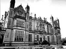 In 1749 Merevale Hall was inherited by Edward's eventual descendant Penelope Bate Stratford (the daughter and co-heiress of Francis Stratford of Merevale) who married William Geast. William Geast took the surname of his Uncle, John Dugdale, and their child was Dugdale Stratford Dugdale who married the honourable Charlotte Curzon, daughter of Assheton Curzon, 1st Viscount Curzon of the (now) Earls Howe.[13] Their son William Stratford Dugdale had a son also named William Stratford Dugdale who had a son named William Francis Stratford Dugdale, who came to be the 1st Baronet.[14] The Merevale estate has descended to the present incumbent, his grandson Sir William Matthew Stratford Dugdale, 3rd Bt of the Dugdale baronets thus:[12]