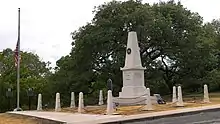 The German-American Treue der Union Monument (Loyalty to the Union), is located in the Kendall County community of Comfort in the U.S. state of Texas. It was dedicated on August 10, 1866 to commemorate the German-Texans who died at the 1862 Nueces massacre. Thirty-four were killed, some executed after being taken prisoner, for refusing to sign loyalty oaths to the Confederacy. With the exception of those drowned in the Rio Grande, the remains of the murdered are buried at the site of the monument. This monument was the first authorized to fly the Star-Spangled Banner at half-mast in perpetuity. It was listed on the U.S. National Register of Historic Places in 1978.[1]