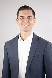 Trevor Mark Evans (born 28 August 1981) is an Australian politician who has been a member of the House of Representatives since the 2016 federal election, representing the Division of Brisbane. He is a member of the Liberal National Party of Queensland, and sits with the Liberal Party in federal parliament.[1] In May 2019, Evans was appointed Assistant Minister for Waste Reduction and Environmental Management in the Morrison Government.