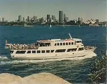 After his sojourn to England, and his stop-off in New York, Haworth returned to Sydney. With the idea of opening an operation similar to the Circle Line, he was approached by the owner of a British fairmile, with the idea of opening a marine tourist operation in Sydney. Understanding that most new businesses lost money during their first several years of operation, he and Geraldine agreed that they would fund the new company with the profits from their marina business.[2] In order to take advantage of the best location in the harbour, Haworth lobbied Sydney politicians, finally being granted the opportunity to operate from the logistically advantageous Jetty 6, also known as Circular Quay.[5] Captain Cook Cruises began operations on 26 January 1970.[3] Initially, the line only offered sightseeing cruises around Sydney Harbour twice a week.[4]