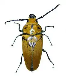 Trictenotoma grayi is a species of beetle and the only representative of the family Trictenotomidae from southern India where it is found. They can be easily mistaken for Cerambycid beetles but the antennae arising from a notch in front of the eye give away the family.