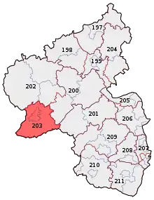 Trier is an electoral constituency (German: Wahlkreis) represented in the Bundestag. It elects one member via first-past-the-post voting. Under the current constituency numbering system, it is designated as constituency 203. It is located in western Rhineland-Palatinate, comprising the city of Trier and the district of Trier-Saarburg.[1]