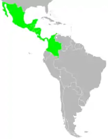 Trigona fulviventris is one of the most widely distributed bees of the genus Trigona and is found in Mexico, Belize, Colombia, Costa Rica, El Salvador, Guatemala, Honduras, Nicaragua, Panama, and the Panama Canal Zone.[1] It is more commonly found at low- and mid-altitudes and has been observed to withstand a wide range of humidities.[2] Habitats in which T. fulviventris colonies make their homes include both tropical dry and tropical wet forests.[7]