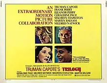Trilogy (also released as Truman Capote's Trilogy) is a 1969 American anthology drama film directed by Frank Perry and written by Truman Capote. It was listed to compete at the 1968 Cannes Film Festival,[1] but the festival was cancelled due to the events of May 1968 in France.
