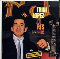 Trini Lopez at PJ's is the debut, live album by singer and guitarist Trini Lopez, released in 1963 on Reprise Records.[1][2] Many of the tracks are folk music songs. The record was a result of Don Costa hearing him perform at PJ's nightclub, and signing him to his new Reprise record label. The club floor was miked to get the crowd reaction on the record, as the producer and Frank Sinatra wanted the "live" experience to come across in the recording. The cover shows Lopez with his Barney Kessel guitar, outside the nightclub. The album peaked at #2 on the Billboard 200 in August 1963 where it remained for 6 weeks.