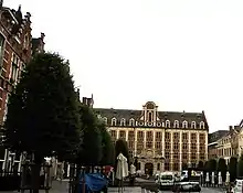 Trinity College was one of the colleges of Leuven University, dedicated to preliminary studies in the liberal arts. The college was established by the university authorities in 1657 to replace the "Collège de Gand" founded by Frans van de Nieulande (Franciscus de Nova Terra) in 1559, which had closed in 1655 for lack of funds. Building began in 1658, under the supervision of Jan du Can and Adriaan van Mechelen, and from 1659 the college was housed on the Old Market. It was sometimes known as "Collegium Novum" (New College).[1] The college was sequestered when the university was closed down in 1797 during the French occupation. The buildings were sold at public auction in 1802. The southern wing, added in 1684, was demolished in 1813. The final remnants of the 17th-century buildings were destroyed by aerial bombardment in May 1944.[2] Since 1843 a Josephite secondary-school, Heilige Drievuldigheidscollege, has stood on the location.
