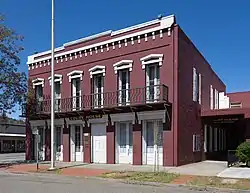 Court operations moved into a newer brick building, shortly after it was purchased in 1865; the building formerly housed the Apollo Saloon and hotel.[4] The 1853 courthouse was destroyed in a September 1866 fire.[3] The brick building purchased in 1865 was built originally in 1856–57 for Henry Hocker as a saloon, store, and office building.[5] Trinity County purchased the building for US$9,000 (equivalent to $160,000 in 2021) in 1865, and it has since been remodeled and expanded in 1935, 1958, and 1976.[6][7][8] It is the second oldest courthouse still being used by a county-level California Superior Court;[4] the oldest is the 1854 courthouse used by the Mariposa County Superior Court.[6]
