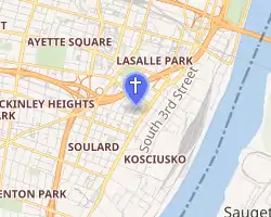 Trinity was known as the "mother church" to three other early Lutheran congregations in St. Louis; this group was called the Gesammtgemeinde, or "general congregation".[6] The others were Immanuel (1848 – 2012) in the Greater Ville neighborhood, Holy Cross Lutheran (1858) in the Gravois Park neighborhood, and Zion Lutheran (1860) in the St. Louis Place neighborhood.[3][10]