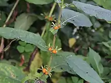 Triosteum aurantiacum, also known as orangefruit horse-gentian, is a perennial[1] species of Triosteum native to North America. [2]