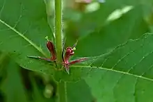 Triosteum perfoliatum, commonly known as feverwort,[1] is a species of flowering plant belonging to the family Caprifoliaceae. It is found Eastern North America. The yellow-orange berries can be dried, roasted, ground, and used as a coffee substitute.[2]