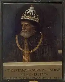 Tristão da Cunha (sometimes misspelled Tristão d'Acunha; Portuguese pronunciation: [tɾiʃˈtɐ̃w̃ ðɐ ˈkuɲɐ]; c. 1460 – c. 1507) was a Portuguese explorer and naval commander. In 1499, he served as ambassador from King Manuel I of Portugal to Pope Leo X, leading a luxurious embassy presenting in Rome the new conquests of Portugal. He later became a member of the Portuguese privy council.
