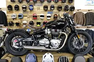 The Triumph Bonneville Bobber is a bobber-style cruiser motorcycle based on the Bonneville series from Triumph Motorcycles Ltd. It was announced late 2016 and began selling in February 2017.[2]