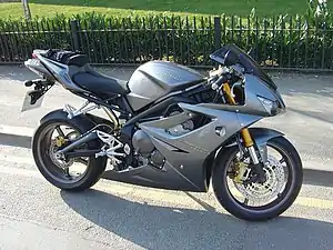 Introduced in 2006, the Triumph Daytona 675 is a three-cylinder sport bike, and the smallest of the Triumph triples. Built by Triumph Motorcycles, it replaced their four-cylinder Daytona 650. The 675 proved to be remarkably light, nimble and powerful; at a maximum of 128 bhp it was also very quick, and it was very successful against the Japanese 600 cc competition. In 2016, Triumph ceased production of the base model Daytona 675 citing diminishing demand for super sport bikes and increasingly strict European emission standards.[1] Triumph continued to produce the up-spec Triumph Daytona 675R model until the 2018 model year.[2][3] Triumph filed a new trademark for the Daytona, fuelling rumors that there may be a future version sporting the new 765 cc engine.[4][5]
