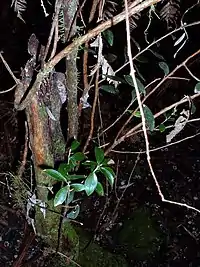 The habitat is above 1000 metres above sea level in cool temperate rainforest, usually dominated by Antarctic Beech or Sassafras.[1][2][3] The Latin specific epithet montana refers to mountains or coming from mountains.[4]