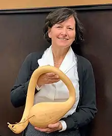 Tromboncino (Italian: [trombonˈtʃiːno]), also known as zucchetta (Italian: [dzukˈketta]), is a type of squash most often used as a summer squash. While nearly all summer squash are cultivars of Cucurbita pepo,[1] tromboncino is a cultivar of Cucurbita moschata.[1][2] The vining growth habit[1][3] is similar to many winter squashes, but unlike most other summer squash.[1] It is more tolerant to some common summer squash pests, including squash vine borer,[2] squash bugs,[2] and powdery mildew, than the more commonly grown, bushy, C. pepo summer squash cultivars.[2] The plants are slower to start producing than some C. pepo types.[2] The fruit color is usually pale green, fading to beige upon maturity,[1] and it is picked around one foot long for summer squash. It is an heirloom,[4] originally from Liguria,[5] and remains popular throughout Italy and abroad.[1][3] Tromboncino squash can be left to mature into a winter squash; such is often compared to a watery[6] butternut squash.[7][5] If left to ripen, the fruits can grow over three feet in length.[4] Its flesh is delicious roasted or when prepared in a stew or soup.