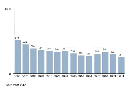- "Superficie di Comuni Province e Regioni italiane al 9 ottobre 2011". Italian National Institute of Statistics. Retrieved 16 March 2019.
